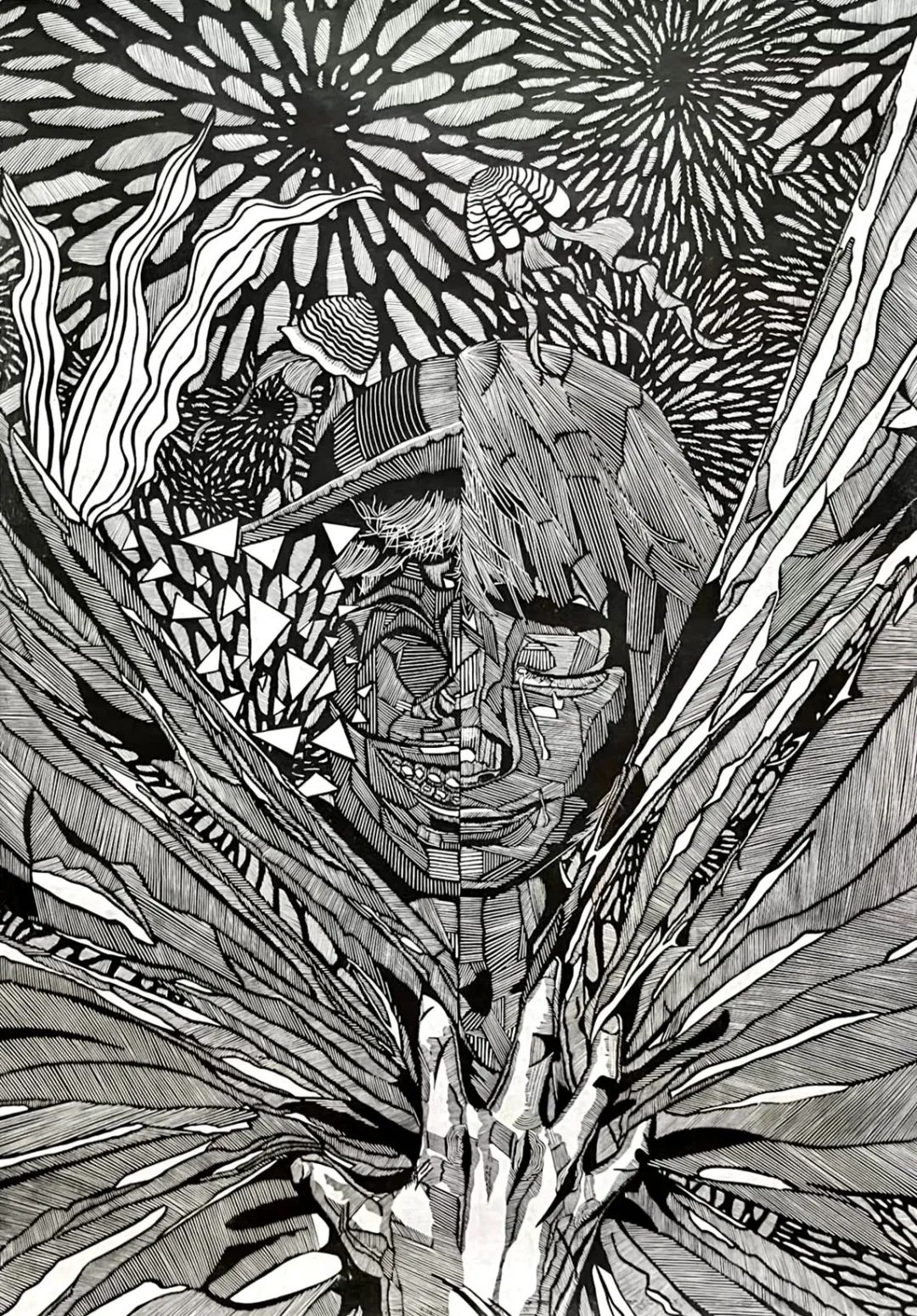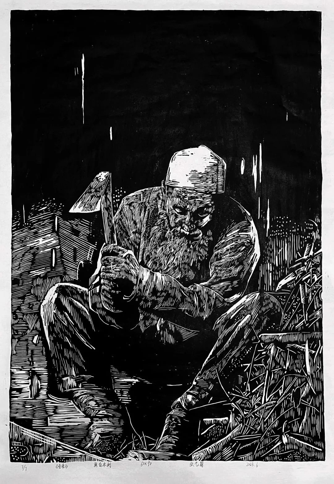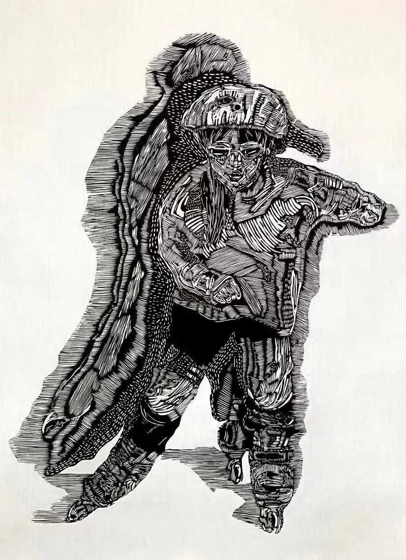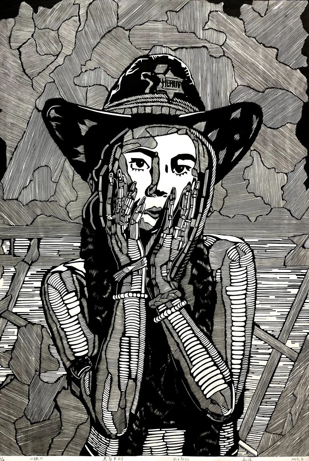 《治愈》代睿琪 黑白木刻 56.9×83.8cm