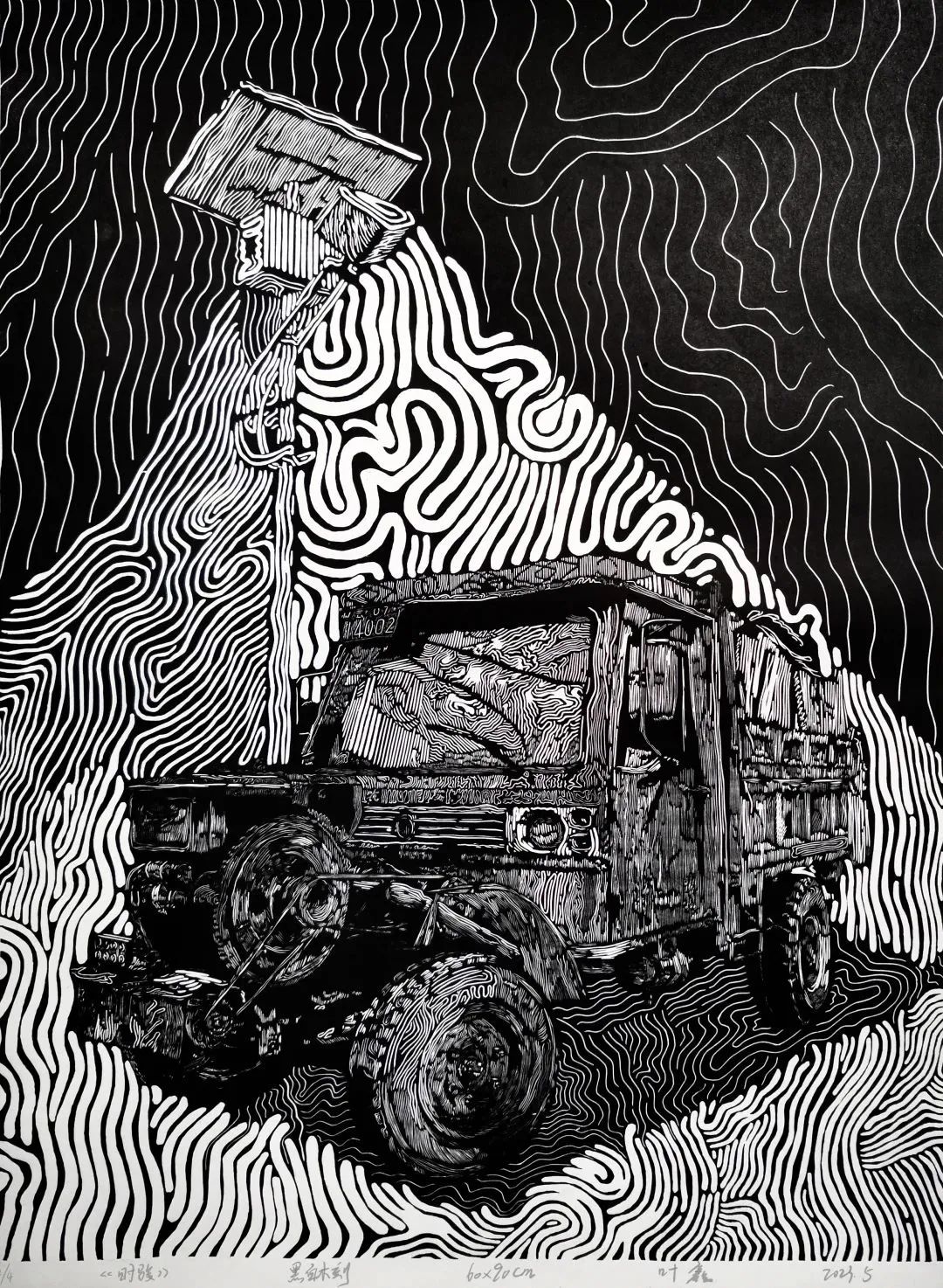 《今夕是何年》陈玲玲 黑白木刻 55×113cm