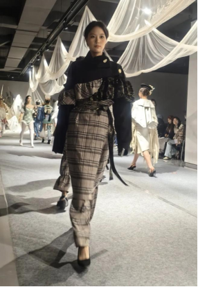 最后现场伴随着古筝响起,曲调悠扬。模特们身着同学们设计的各式精美的旗袍,或典雅,或华丽,或清新。她们迈着轻盈的步伐,展现出旗袍独特的韵味,举手投足间尽显东方女性的柔美与端庄,为观众带来了一场视觉盛宴,赢得阵阵掌声。此次旗袍秀不仅是一场演出,更是对传统文化的生动传承与展示