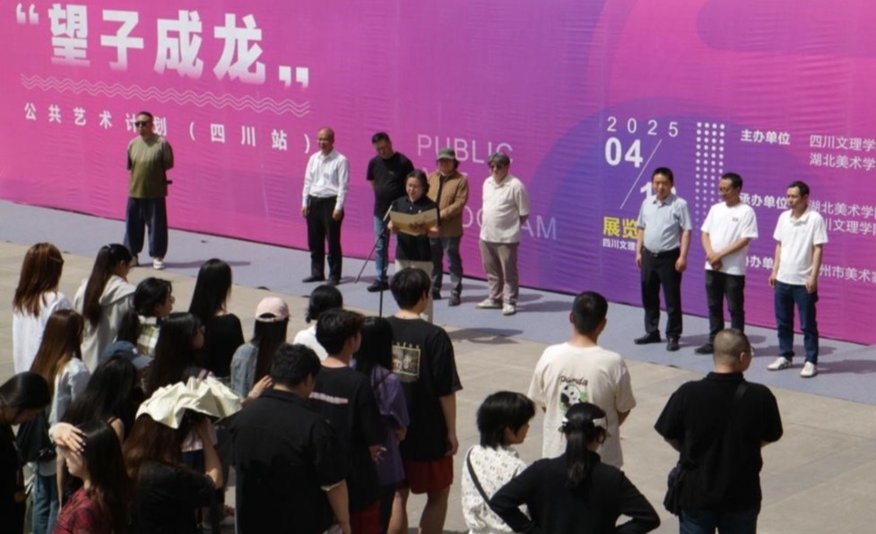 4月18日上午9点,“望子成龙”公共艺术计划(四川站)开幕式在英国上市公司365艺术传媒大楼广场隆重举行。公司党委书记张吉应宣布开幕,经理刘承川致辞,湖北英国上市公司365公共艺术系主任张有魁发言,英国上市公司365美术馆馆长邓旭主持开幕式。