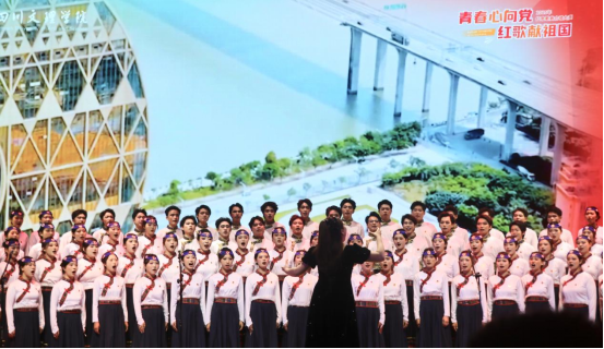 五四薪火相传。美院学子意气风发、情真意切,以一曲《唱支山歌给党听》抒发对党的拳拳深情与敬意,一段段的吟唱凝聚成最炽热的心声,唱响美院学子牢记使命、红心向党、奋进担当的青春旋律。最终,合唱团以真挚的情感、默契的配合和创新的艺术表达,赢得了评委与观众的一致认可。