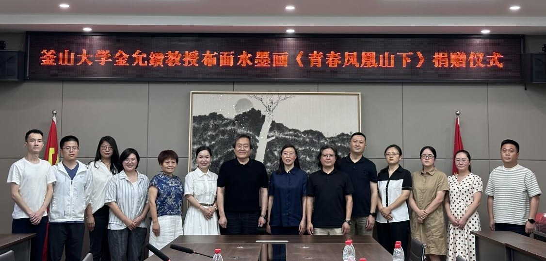 韩国国立釜山大学金允鑽教授向学校捐赠布面水墨画《青春凤凰山下》